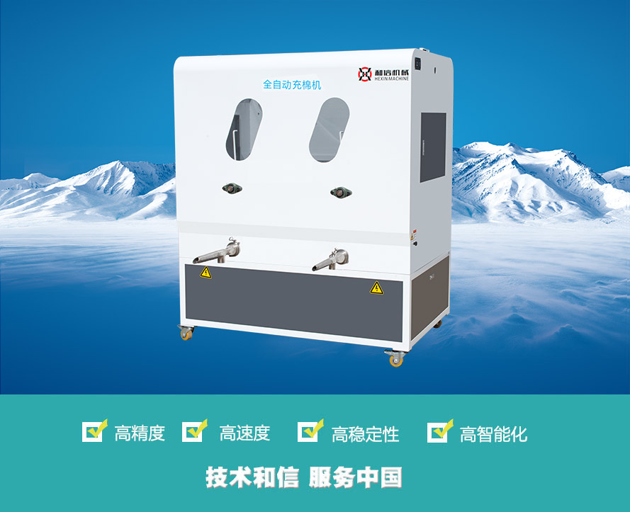 5)高性價(jià)比:在提供生產(chǎn)效率的同時(shí)還節(jié)省了人工。一臺(tái)雙頭充棉機(jī)可完成十到十五人的工作量,使用充棉機(jī)可大大降低人工成本。